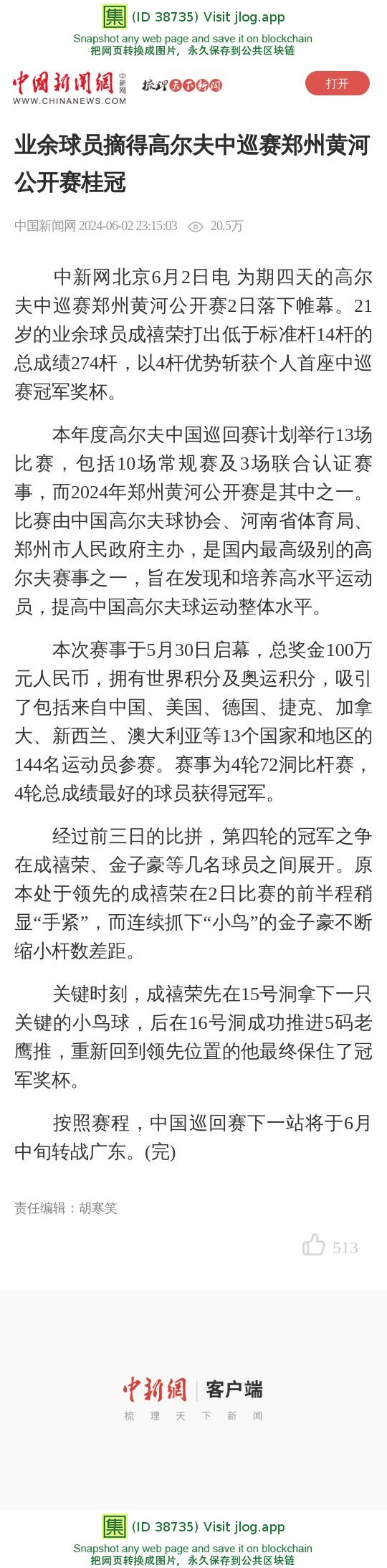 业余球员摘得高尔夫中巡赛郑州黄河公开赛桂冠