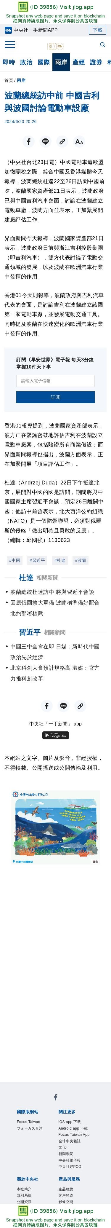 波蘭總統訪中前 中國吉利與波國討論電動車設廠 | 兩岸 | 中央社 CNA