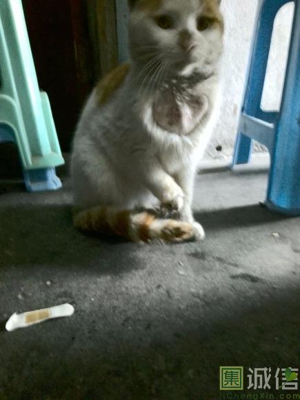 同事捡的流浪猫生的小猫,叫小白,猫妈妈生她的时候难产死了。 她的孩子之一,最强悍的一只留在了厂里,自从他来了后,厂里的老鼠还真见不到了。不知道是不是一次和老鼠作战中把自己给伤了,隔了1个多月才回来。我们都以为他走了。结果他是这样回来的。