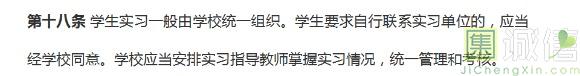 所以再心疼也是没有办法啦,学生也不是不可以自己联系实习单位,但是,要取得学校的同意,这在广东省高等学校学生实习与毕业生就业见习条例》中第十八条:
