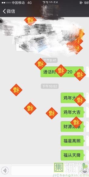 在手机上抢红包已经成为国人过节的新民俗,别说年轻人,连我爸我妈过年都抢的不亦乐乎。表情包当然也是聊天必备,虽然中老年人的表情包打开方式似乎和我们不太一样,但是今年微信春节定制专属表情包却拉近了两代人的鸿沟,因为不管老少都一样啊。 想象一下,平时因为表情包引起两代人的误会,过年却那么和谐,简直是福利啊。 嗯?还不知道今年过年微信春节定制专属表情包是什么,那你得来我们集诚信瞧瞧了。 所谓专属定制,顾名思义那当然是有你印记的表情包,他人无法取代,就像一件衣服一眼看上去就是写上了你的名字,那是非买不可,表情包就单纯不造作,尼玛是真的写上你的名字啊,比如这样式的: 还有这样式的: 想象一下抢完老板发的红包后,别人都发普通的“谢谢老板”表情,而你这时发出的是一个写着“谢谢王思聪老板”的专属表情,是不是诚意翻倍。 年轻人,如果此刻你真的在想象,那么我只能说,你的思想很危险啊,老板给你发红包,你居然谢谢王思聪! 但是不谢王思聪,还是显得很有诚意的。 怎么打开春节定制专属表情包世界的大门? 具体方法是:在微信搜索框中搜索【新春快乐】【讨红包】和【谢谢老板】,用户可以根据需要搜索个性化关键词,比如“谢谢老板”。然后选择搜一搜,出现春节定制表情,点击后即可看到定制表情。 懒得看字思考的可以看图: 顺便一提,除了春节定制专属表情包,还有一些别的彩蛋哦,其实这个大家应该都很清楚,每到特定的日子或语境,聊天内容有某些字词时,聊天见面就会从天而降一些小可爱,比如大家熟知的么么哒。 而今年春节期间就会有特别的小可爱。 下金币 下小鸡 鸡年当然不能少了萌萌的小鸡,本命年快乐 下福气 支付宝集福很辛苦?别集了,微信直接给你下! 下百元大钞 这个事情告诉我们,妈妈,这世界上还真的有掉馅饼的好事,哦,不是,是下钞票雨。 怎样触发这些彩蛋?试试“发年终奖、财源滚滚、福从天降和鸡年大吉”。 一阵小欣喜过后,好生气哦,明白一切都是假的,也许我过了一个假年。 打赏 这篇文章被编辑了 1 次. 最近一次更新是在 2017/01/26 10:51:54 打赏 | |