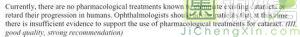 美国眼科学会 2016 年的《成人白内障临床指南》中写到:对于人类来说,目前没有发现有任何一种药物能够有效治疗或延缓白内障的进展。眼科医师应该对患者说明这一问题。
