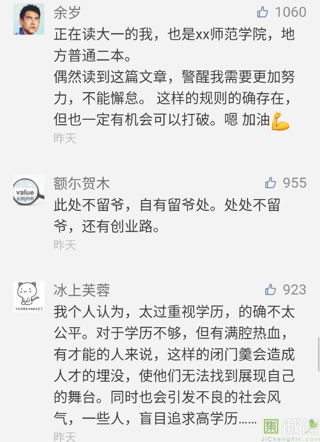 英文与中文字符之间应该空行,页面一定要保持干净整洁,发送附件时记得在邮件正文里向HR表示感谢,就连用什么邮箱发出邮件这个细节也有鄙视链…… ![]() 在我准备投递简历时,一位热心的学长列出来一大堆注意事项。 “有那么麻烦吗?”我问,不就是投个简历的事,说清楚就行了。“哪有这么简单!”学长斥责,现在的招聘筛人门道可多着呢,尤其你这样的普通二本学校,还是学经济专业的到媒体来找实习,指不定就被卡在哪一关。 是的,我是来自一所普通的二本师范类院校的经济学专业学生。4年前,我因为不服从专业调剂,与心仪的学校失之交臂,被补录到这所学校。从那时开始,学校好像就成为我面对询问时一道尴尬的伤疤。 “你哪个学校的?” “××师范学院。” “哦,你们那里的学生以后都去县城乡镇当老师吗?” “大多数都是吧,当老师,考公务员。” 我当然不想这样。大四考研结束后,我带着几年实习工作的经历和取得的一些成绩开始做两手准备——等考研成绩,找工作实习。但接下来让我没想到的是,一个普通的实习求职也如此艰难。 那几天里,我前后投出去四五十封邮件,从媒体单位到自媒体,再到互联网公司,甚至是书店,大多都没有收到回复。我的心情也逐渐由最初的自信满满转向隐隐的焦虑。面对手机屏幕,求职软件上的信息往往显示“您的邮件已投递到对方HR邮箱”,然后就没有了下文。 辗转找到一位HR,他向我解释,这种情况就是你的学校达不到要求,招聘方直接忽略掉了。 “因为每一个筛选环节都可能有鄙视链,有的人不要非985、211的,有的人不要跨专业的,你只能服从规则,否则只能被清理出局。”HR告诉我。 他们就不能仔细看看我的简历吗? 大学4年里,我都在朝自己规划的方向发展。我的经济学专业背景与我的职业规划无关,但这也并非弱项,我相信经济学背景能为我提供一些新闻专业毕业生不具备的视野。 长期以来我都觉得,虽然我本科的学校不甚理想,但只要我大学期间多做准备,积累丰富的经历,也可以填补一些不足。如果有朝一日同台竞争,我也能做到不比名校学生差。 大二时,我进入一家中央级媒体实习,敏锐的观察力让我抓住一些记者没有关注到的校园新闻点,“校园网贷兴起”、“大学生寒假工陷阱重重”等报道登上头版,屡见报端。参与很多重大突发事件报道时,我总能快速通过网络找到当事人,为一线记者提供最新线索,通过电话采访快速获得现场信息,单位的老师们偶尔夸赞“干得漂亮”。 大三时,我成为一家全球领先的公共关系咨询公司的线上实习生,负责媒体信息监测。而之所以能成为这里的实习生,我知道全是因为朋友的照顾,她是这家公司的部门主管,因为工作太多刚好需要一个实习生帮忙,所以我才有了机会。在这家公司的3个月里,我积极完成本职工作,第一时间关注各类行业企业动向和人员变动,及时更新媒体信息,跟同事交换对各类互联网业务的看法,敏锐的观察力和深刻的理解力也得到大家的肯定。 这些原本引以为傲的经历并没有给我带来太多帮助。半个月过去了,我还在努力投简历,收到的结果并不理想。大多数发出的简历都被直接忽略,石沉大海。漫长的等待中,我收到一家公司的回复。 一家来自上海的播客平台内容运营项目的HR打来电话,电话那头简单寒暄后开门见山地例行提问,我思索片刻一一作答。几番交谈之后,我能感觉到他的满意,随即他说:“看来你对我们行业的发展了解还是很多的。” 他的话让我略感放松,但接下来的一句话又让我紧张起来。电话那头问:“对了,你是哪个学校的?” 我如实报上我的学校和专业,他稍停继续发问:“你们学校主要是培养师范类学生吧,你还是个学经济的,那你靠什么学的这些?”我回答:“自学。” 电话那头缄默了一下,缓缓说:“是这样,我们这个招聘主要还是针对211、985院校,你的条件不错,但我还是需要考虑再答复你,后续结果你注意看邮件。” 我礼貌谢过。可刚挂电话,手机屏幕上就弹出来一封邮件:“您好,我们认为您的情况与我们的岗位要求不符合。”我看到了标题后默默把手机放回了口袋。 如果我能行,你为什么不愿给我个机会? 身边的朋友跟我调侃,我们这样的学校就是“为地方县市培养教师和公务员”的,你应该摆正位置。 我想,我并不喜欢大城市给我带来的紧张感和快节奏,但只有在这里,我才能找到我期望的机会和平台,回到家乡那个偏僻的县城考个教师或者公务员平淡度过一生,并不是我的理想。 我真的只能默默接受这一切吗?还是希望某一个时刻足够好运,简历能被人筛选出来,“这个看着不错,给他发个面试邀请试试?” 合上电脑,我又想起大学室友反复跟我说过的那句话:“你今年一定要考上研究生啊,等你考上了,就不用跟我们一样求职受这种窝囊气了。” 2018年,希望我的考研结果满意,希望每个毕业生都能拥有光明的未来。 来源: 人民日报 中国青年报,作者:星野