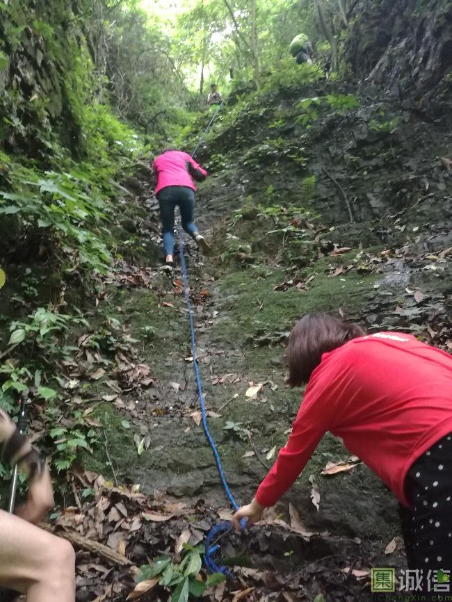 ![]() 红岩最难的就是这一段,要接连过两个瀑布,第一个瀑布前面的水潭基本是一下去下半身就湿透了,然后从旁边的斜坡爬上去,因为还是有点危险,所以女生的背包都没背,然后借助安全绳爬上去的,第二个瀑布也是从旁边的石头爬上去的,还是很感谢一同的男生们的,我们的背包在这里都是他们帮忙背的。在这里差不多就花了有一个小时。