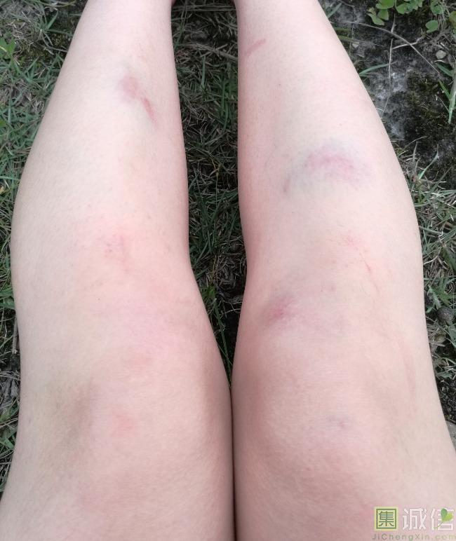 其实徒步对于培养一个人的专注力还是很有用的,毕竟不希望受伤,有些路段危险性还是比较大,我们每个人在去之前徒协帮我们买了自助游保险,像红岩这种线不太建议缺乏运动的人一开始就选择,大学城这边的学校是每个学期都有一百公里左右的校园跑,所以体能方面还好。我们一天差不多走了有8,9个小时,领队说还是最快的一次,提醒一下,水路的徒步一定要踩稳再走,傍晚到了休息的地方,我的腿差不多就是下面这样了。昨天不觉得,今天周一回到学校上课上下楼梯都是抖得,感觉不是自己的腿了。