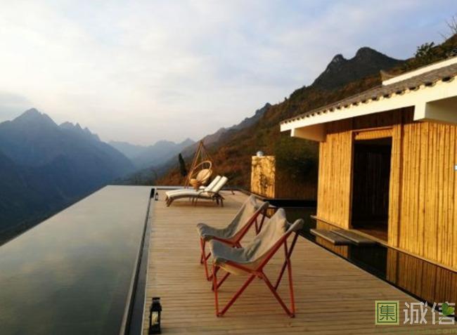 ![]() ![]() 远眺这样的一家民宿,目测民宿大概占地约二三十亩(具体数据待查)。但是不高的楼层在晚霞的照耀下14间用玻璃幕墙装饰的房间随着霞光折射出别样的色彩,漂亮至极。我们的汽车沿着弯曲的山路向民宿出发,约莫20分钟就来到了民宿的大门,木质的大门配合着旁边亦或是民宿主人刻意堆放的圆木头,柔和的色彩搭配吸引着我们近距离去探究这家民宿。