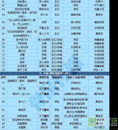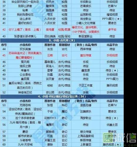 首先,我先简单盘点部分即将向我们涌来的各种IP。 一. 网络小说IP改编类 目前IP改编的大头,网络小说IP改编中,题材从盗墓、修仙、玄幻,再到架空、言情校园,甚至耽美都一一被改编了,换句话说网络小说IP是影视剧改编的重灾区。小农民甚至产生了光是数这些IP的名字数一天都数不完的错觉。比如: 1.盗墓:《鬼吹灯》和《盗墓笔记》不仅搬上大荧幕,电视剧也有好几家公司买下了版权,其中最引人注目的是候洪亮团队(正午阳光影视公司)买下的《鬼吹灯》版权,男主是靳东(这个我期待),女主陈乔恩(无感)。其实我对这类题材不感冒,但是想着候洪亮和孔笙的良心招牌,或许会有惊喜吧。《盗墓笔记》的网剧在一片骂声中大赚,其前传《老九门》(讲盗墓中主角爷爷奶奶的故事,暂且称为前传吧)这个暑假也要和我们见面了。