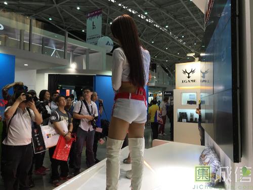 按照展览会定律:人潮拥挤的地方一般就有美女