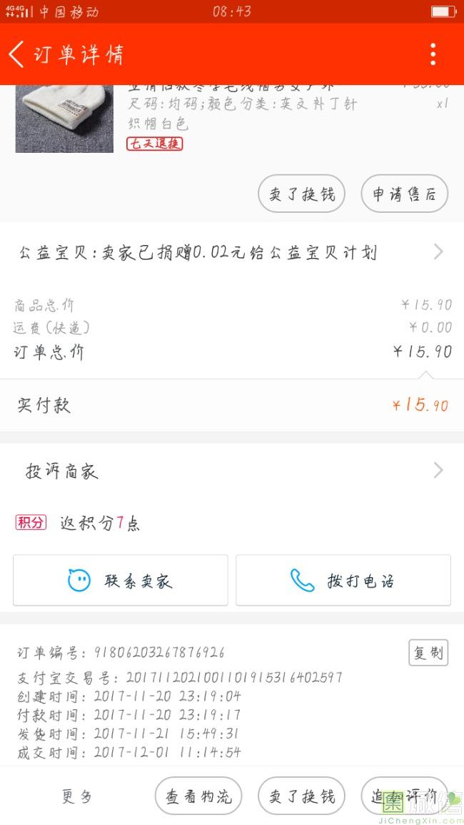 帽子物流很快,下单第三天就到了,白色的,上面没有一点瑕疵,挺厚实的,很百搭,戴着特别小清新,毛线质量也很好,不扎手,不起...
