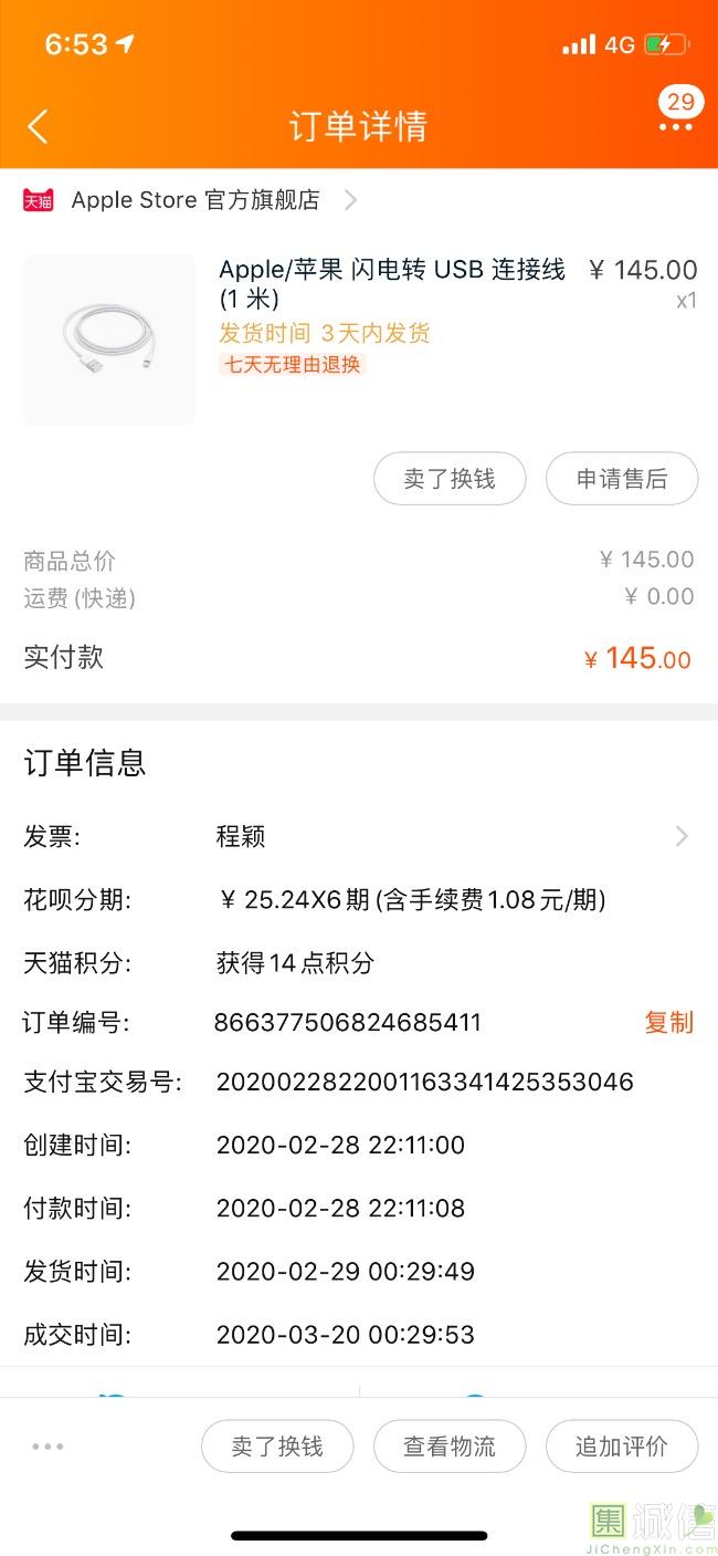数据线坏了不敢买杂牌的就买了原装 物流特别快 顺丰前一天晚上买后一天晚上就到了很方便 是正品质量好