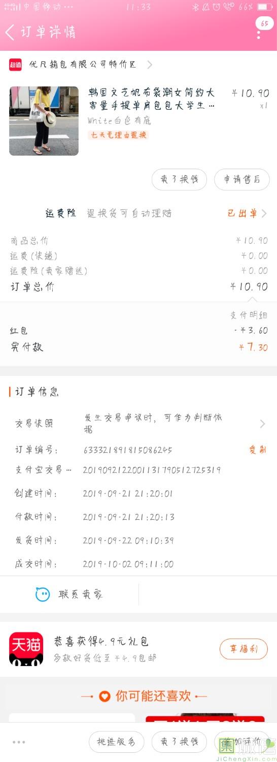快递也太快了吧,两天就到了。这个包真的特别大,松松垮垮的背起来很好看。买的白色的,粗布质感,很百搭,酷酷的,舍友也要了链...