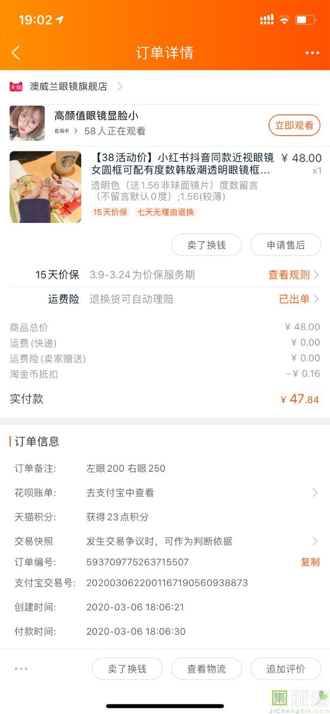 这款眼镜边框是透明的淡蓝色,挺好看的,我配的是有度数的,戴起来很清晰,做工也不错。眼镜盒是丝绒的外包装,把眼镜保护的很好...