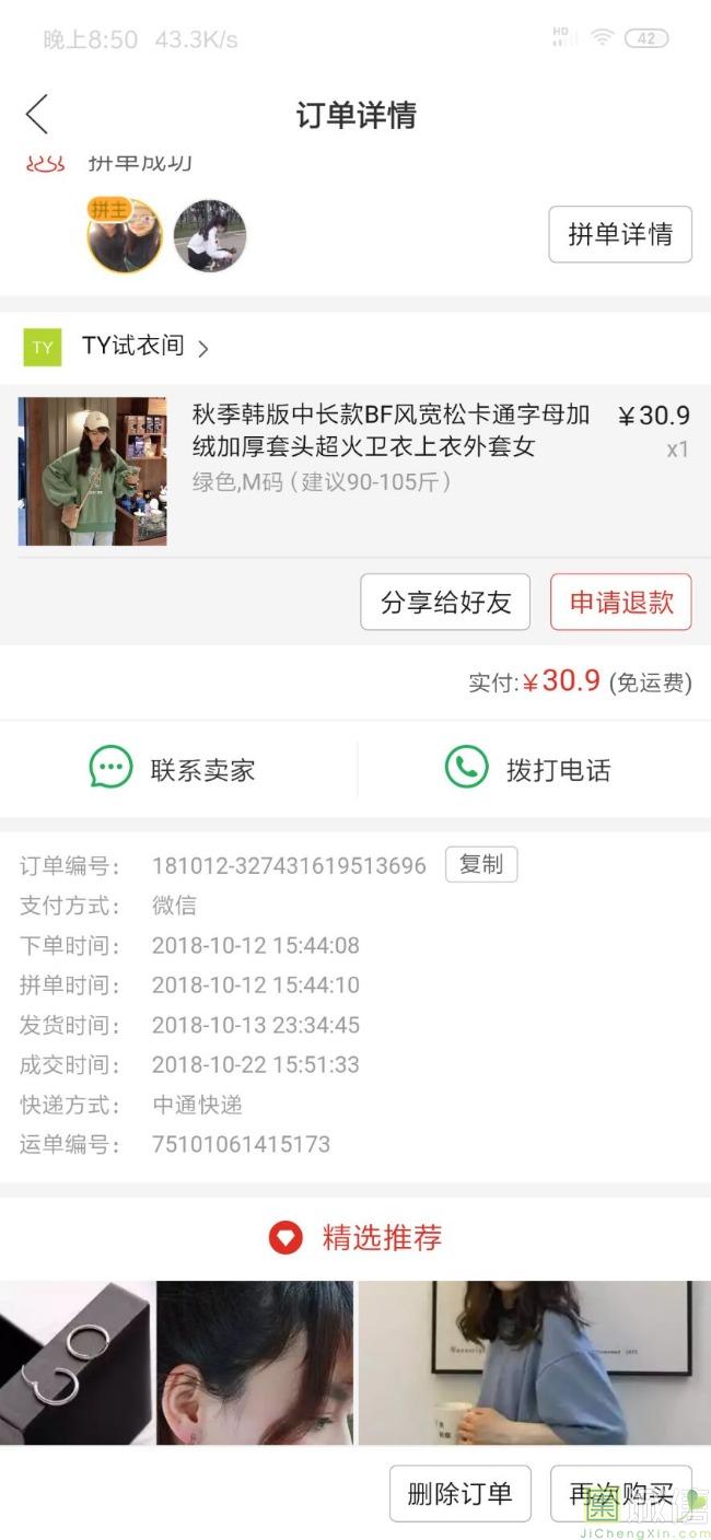 衣服的码子很合适,大小刚好,而且我买的是件绿色的,颜色很棒,没有色差,衣服的里面面料很舒服,是亲肤的,质量也很棒。