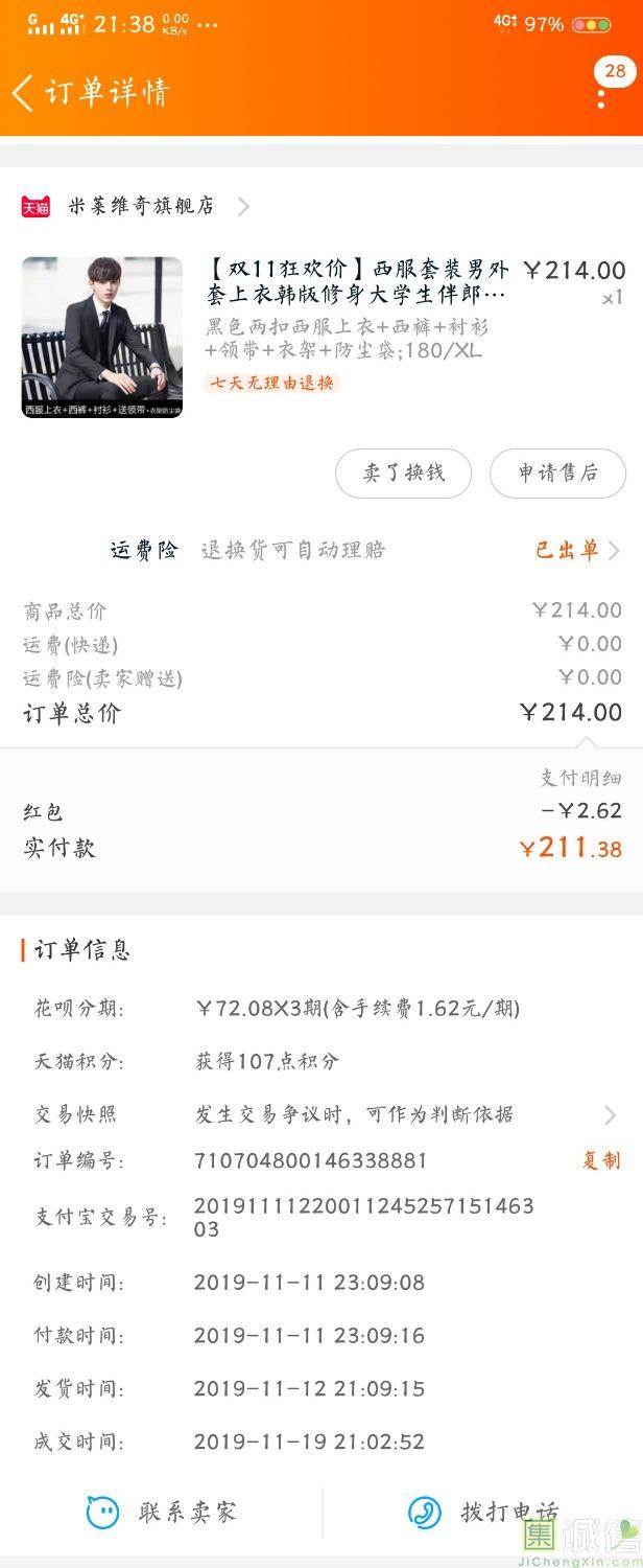 西装是送给男朋友离校就业的一份礼物,西装质量挺好的,很修身很衬身材,男朋友身高177,穿着很显气质,穿了几次了没有气球脱...