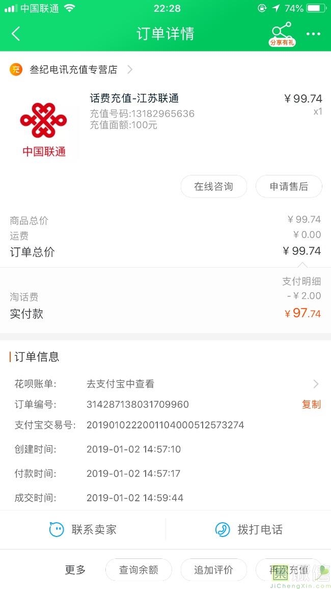 我一直用的是淘宝支付宝充话费,这家虽然过去很久才来评价,但是看发货时间和充值到账时间也能知道,这家的充值速度是特别快的,...