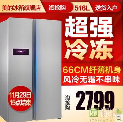 虽然不喜欢吃冰箱里存放过的食物,但是没有冰箱还是觉得很多东西没有地方放。选来选去,还是选了美的的冰箱。 双开门的,实体店...