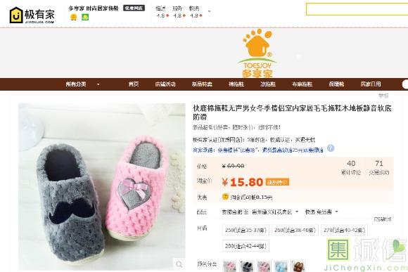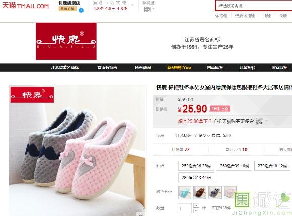 一直很喜欢快鹿这个牌子的拖鞋。在淘宝很天猫上搜到了同样品牌的鞋子,天猫上卖25.90,淘宝上卖15.80,最后选择了 淘...