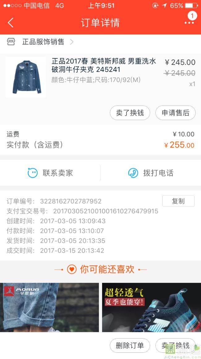 牛仔外套穿起来很潮,适合青年穿,穿起来很舒服,质量很好,穿了很久了,并没有发现一些坏的地方,物流超快.