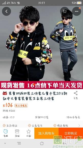 给我弟买的三件套。很可爱,穿着很阳光,买的黑色,因为男孩子总是淘气所以买了黑色让他多穿几天再洗。质量也很好,就是我拍大了...
