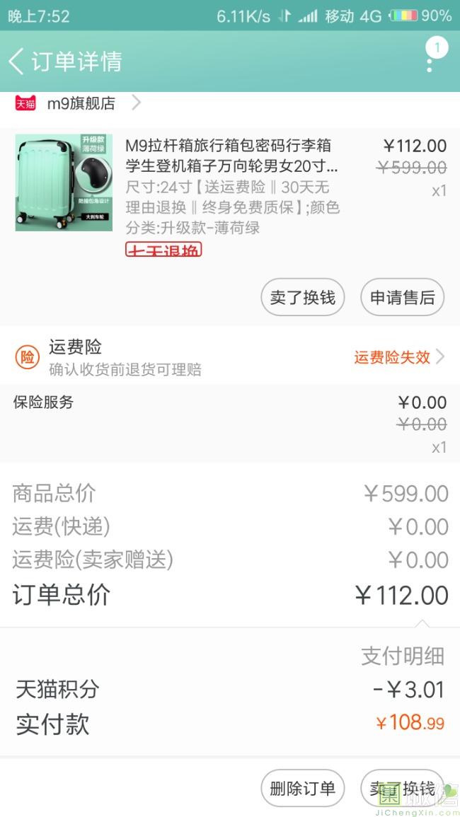 薄荷绿的颜色看起来特别的好看,行李箱的质量很好,踩在行李箱上跳过的,特别的牢固,拖着走的时候噪音还蛮小的。