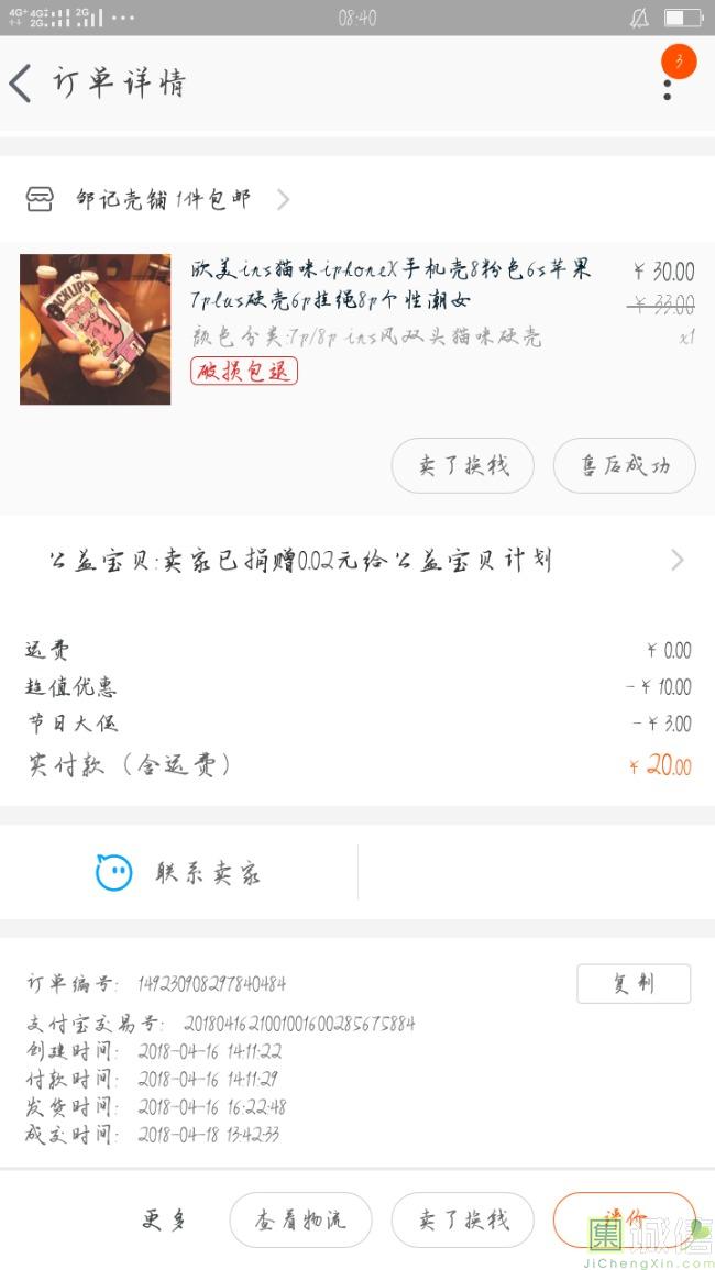 手机了已经套在手机上了,合适 质量很好,壳不硬,防摔效果很明显,上面的图案很特别,猫咪也粉色很卡哇伊!特别喜欢,物流快,...