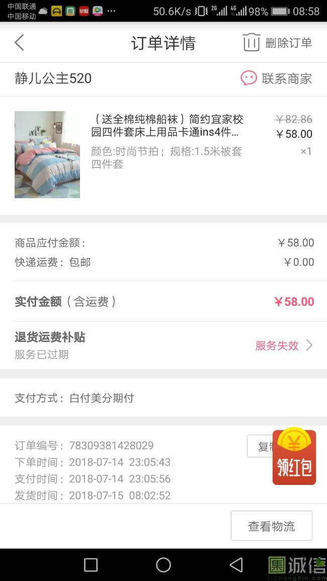 四件套已经收到货了,物流很快的,非常满意。四件套拆开来没有任何的质量问题,买的粉色的特别温馨的感觉,颜色也特别好看,真的...