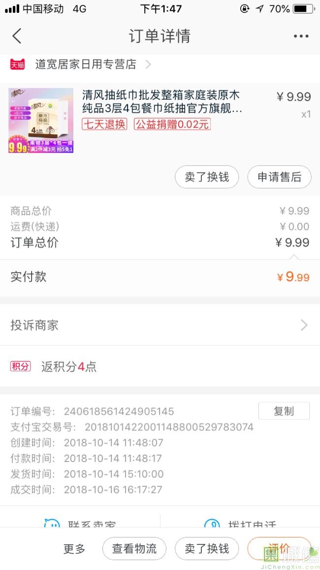 生活用品 好评!卖家发货速度快,两天就收到了。收到的宝贝和卖家描述相符,收到的是四包纸巾,和在超市买的一样,质量很好,是...