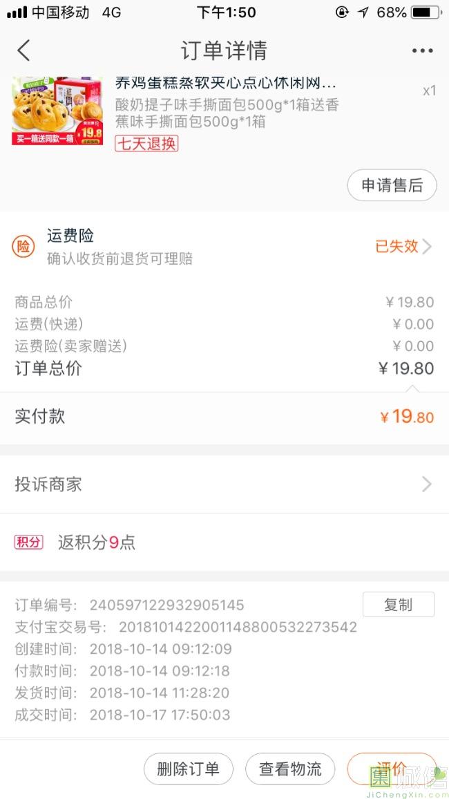 食品 好评!卖家发货速度快,收到的宝贝与卖家描述相符。以前一直买的都是良品铺子的,这次的的这个味道也很不错,面包很柔软。...