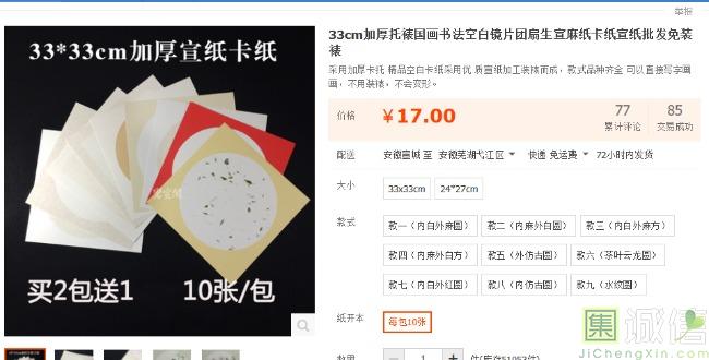 33cm加厚托裱国画书法空白镜片团扇生宣麻纸卡纸宣纸批发免装裱 包装特别好。镜片挺厚实的,有硬度,这样在外面写生就方便多...